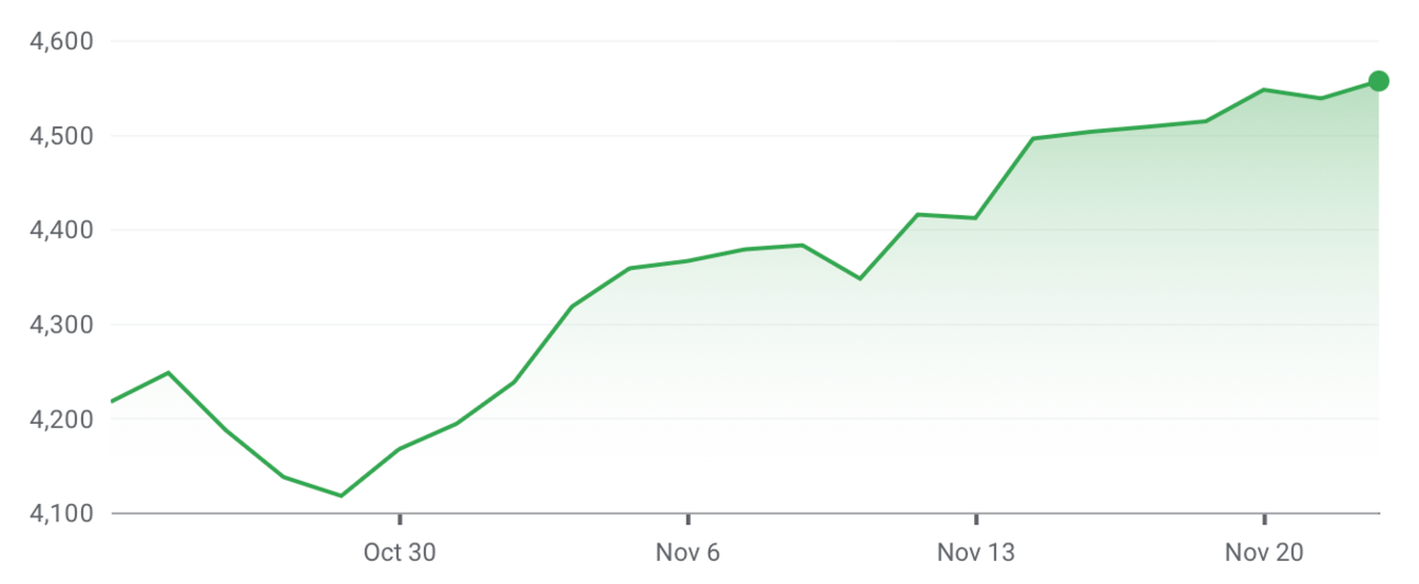 As yields on short-term treasuries have been falling, the big three indices have all been rising in value. The S&P seems on the brink of breaking the 4,600-point mark, which wouldโve sounded improbable only a month ago.ย